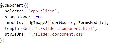 NOTE:- If you are using angular 17 then go to component.ts file and add NgImageSliderModule in import section as per given screenshot.