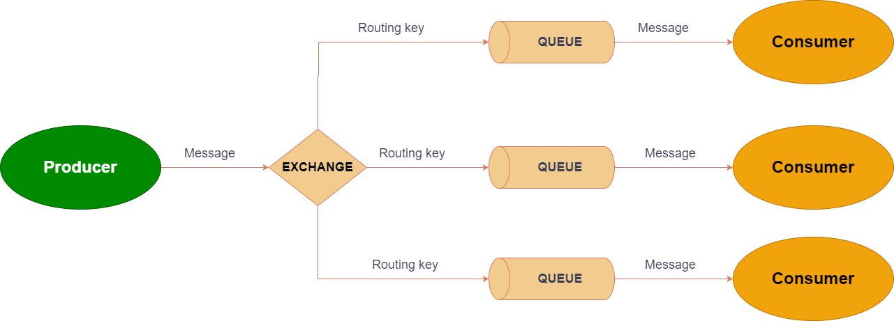 Basically, it acts as in intermediary between the producer and a queue. Instead of sending message directly to a queue a producer can send them to an exchange instead. The exchange then sends there message to one or more queue following a specified set of rules. Thus, the producer does not need to know the queue that eventually receive those messages.