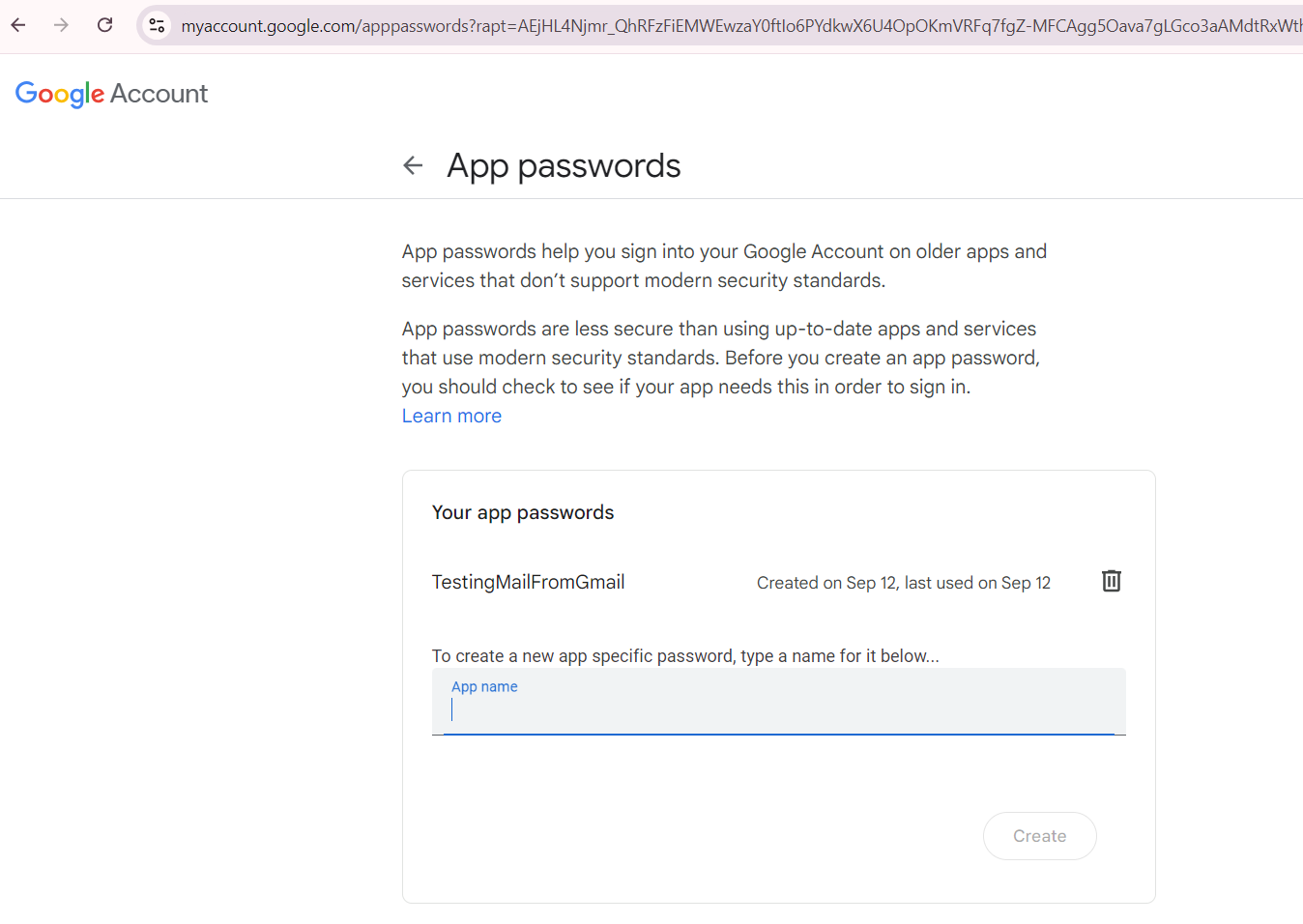 - Here you can create app then generated auto password, you can copy this password. Above password is the APP-PASSWORD.